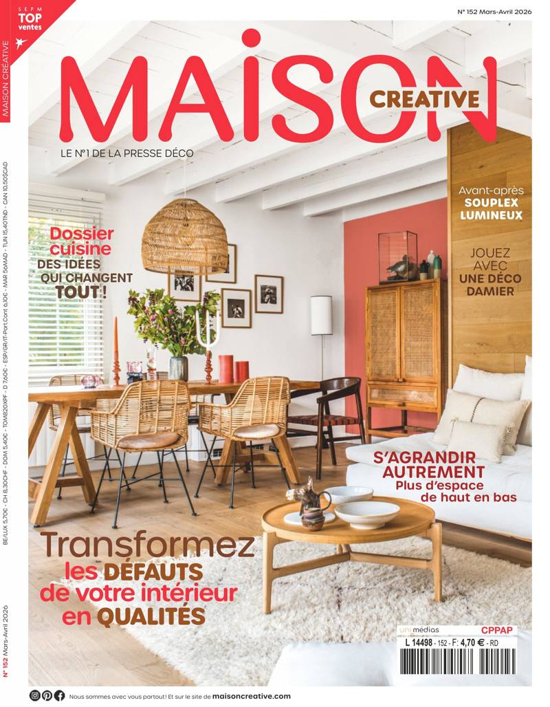 N°1 des magazines de décoration en France ! Exprimez votre créativité. Avec Maison Créative, laissez-vous imprégner par les ambiances déco, découvrez les tendances actuelles et réalisez facilement des créations originales et uniques. Retrouvez des astuces pour remettre au goût du jour meubles et objets anciens et osez personnaliser votre décor selon vos goûts… Magazine bimestriel, Maison Créative vous propose 132 pages d'idées et de conseils pratiques pour aménager, décorer et embellir votre cadre de vie. Créez un intérieur qui vous ressemble !