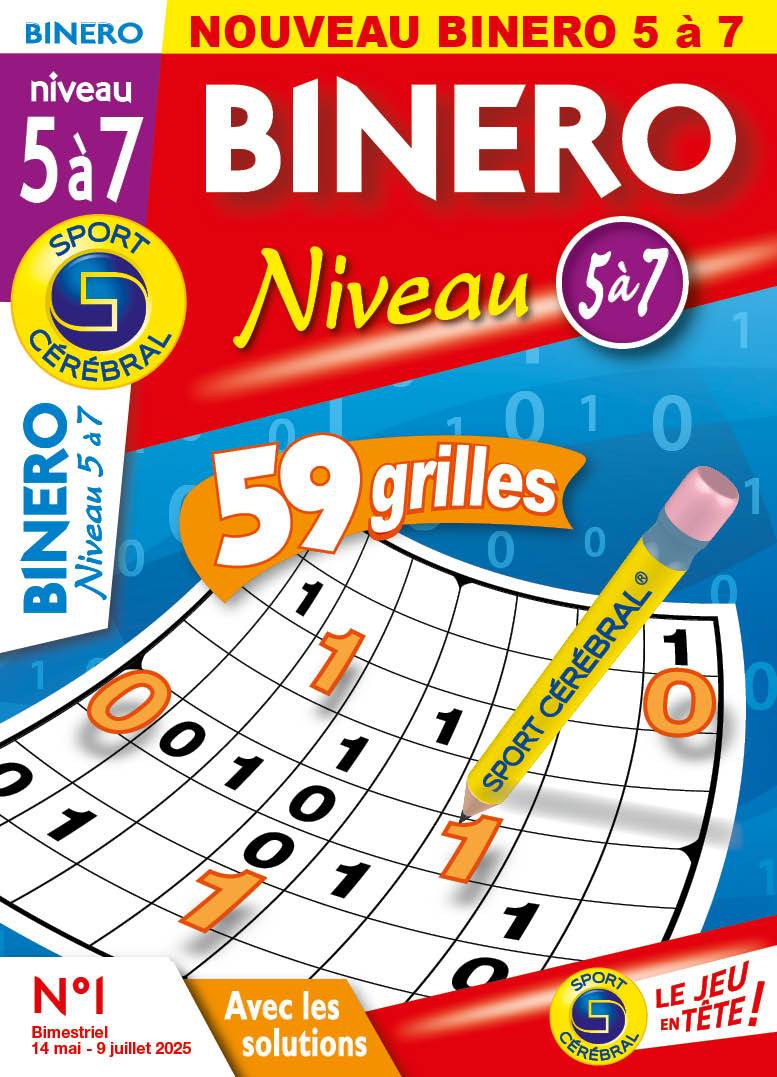 Binéro 5 à 7 est le rendez-vous incontournable des passionnés de jeux de logique et de grilles cérébrales. Chaque numéro propose des Binéros de différents niveaux, pour stimuler l'esprit et s'amuser intelligemment. Idéal pour développer la concentration, la mémoire et la déduction, ce magazine est un véritable entraînement cérébral accessible à tous. Grâce à un abonnement au magazine Binéro 5 à 7, recevez régulièrement de nouvelles grilles à résoudre, à la maison ou en déplacement. Un plaisir simple et efficace pour ceux qui aiment se détendre tout en sollicitant leur logique ! Offrez ou offrez-vous un abonnement magazine de jeux et profitez de nombreuses heures de divertissement stimulant à petit prix.